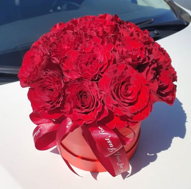 Ziedu kastīte oāze ar rozēm (19 gab.)- apaļā formā ar augstām malām.