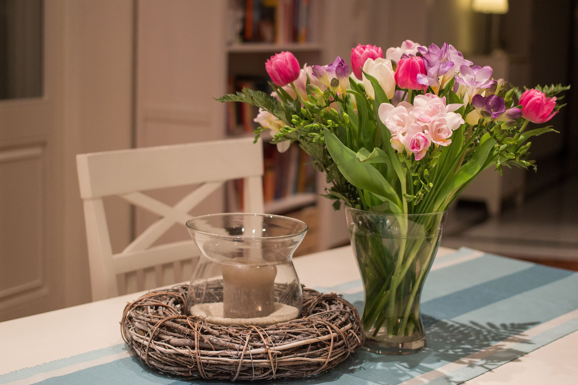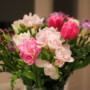 Vidēja izmēra pušķis, kas sastāvā ir smaržīgas frēzijas, rozā un baltas tulpes, kā arī gaumīgi pievienoti zaļumi.