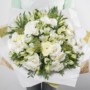 Liela izmēra pušķis baltos toņos, kas sastāvā ir alstromērijas, rozes, ranunkuļi, kā arī gaumīgi pievienoti zaļumi.