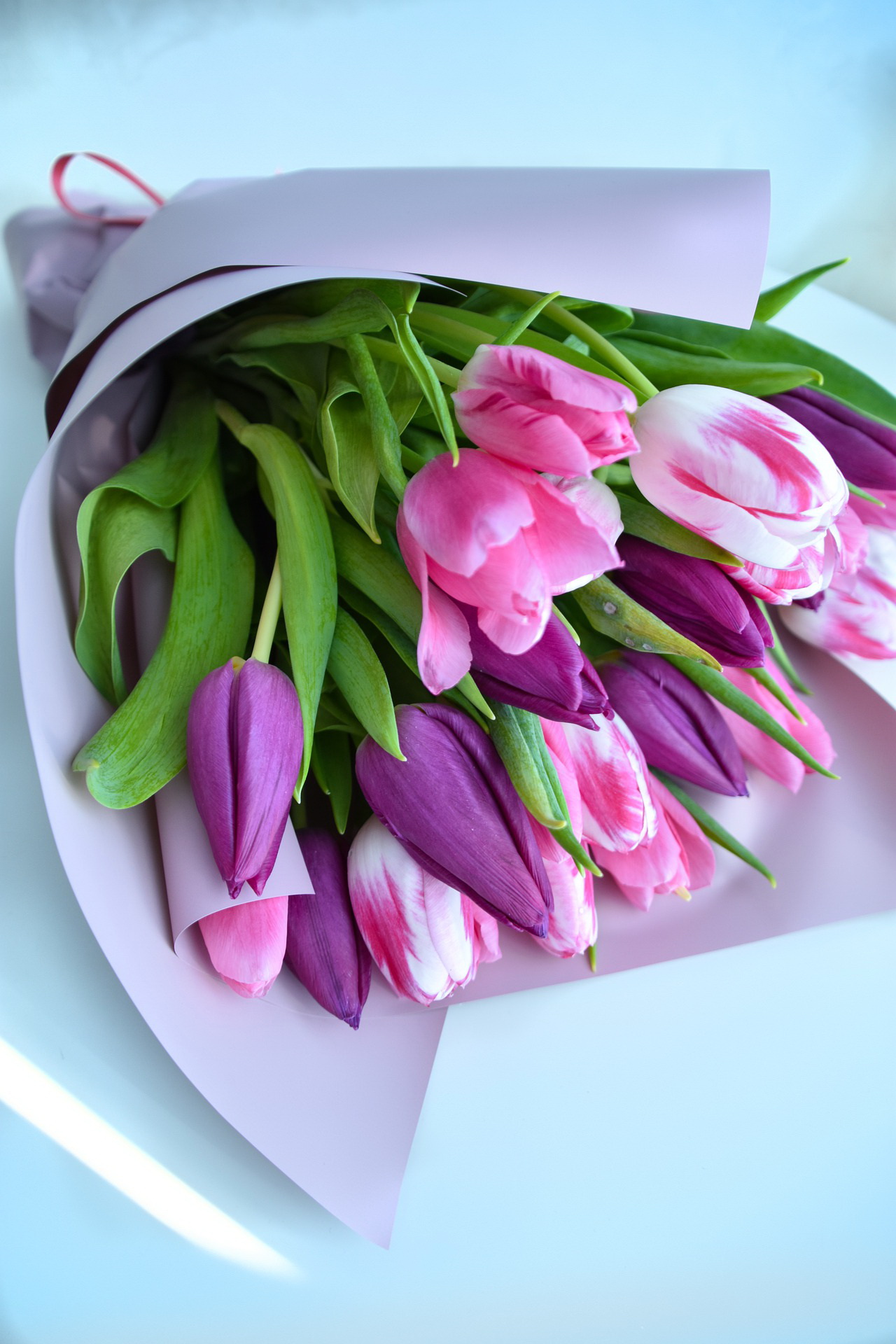 Pušķis – Rozā un violetas tulpes
